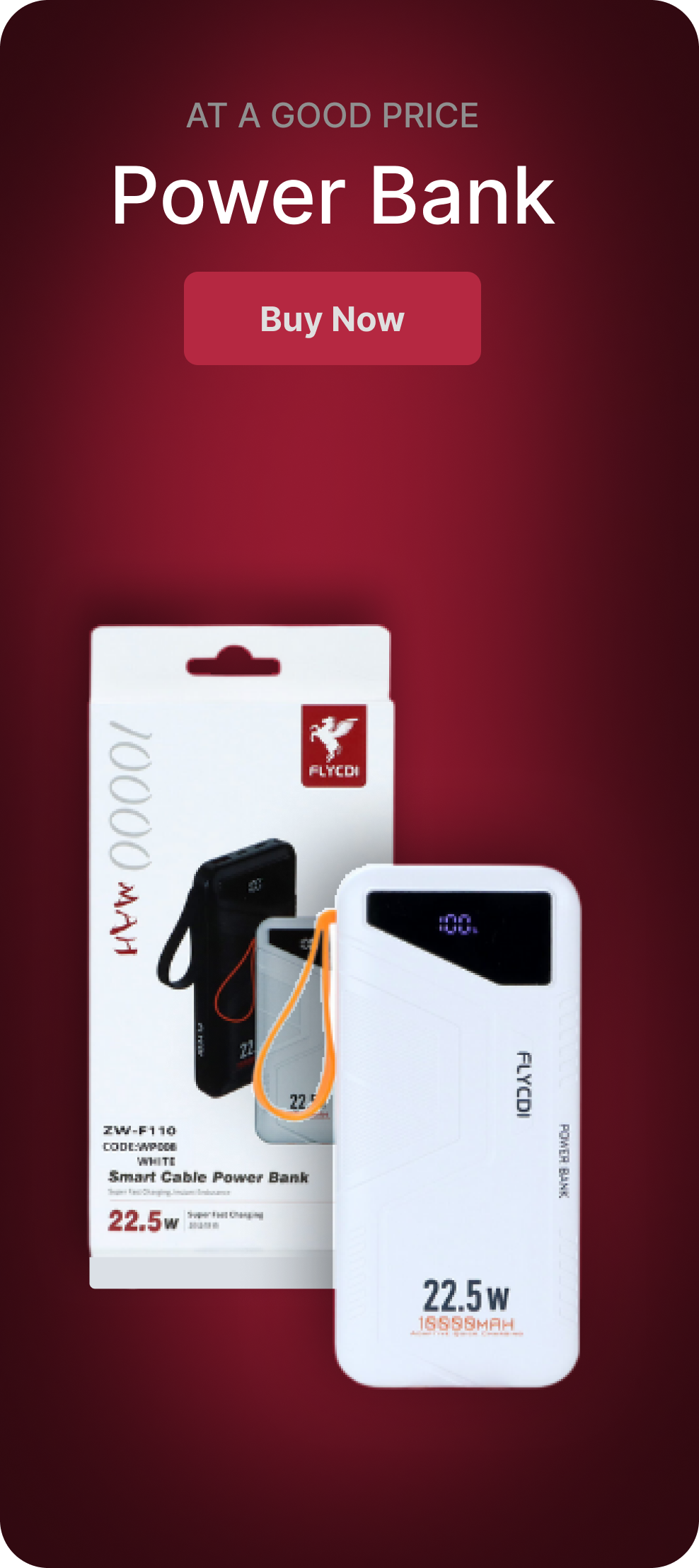 FLYCDI Smart Power Bank 10000mAh – ZW-F110 (22.5W, LED Display, Built-in Cables)