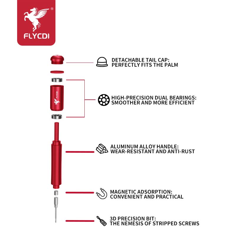 Achieve flawless repairs on smartphones, electronics, and delicate devices with the FLYCDI Steeleequus Series 6-Piece Precision Screwdriver Set. Featuring dual-bearing handles and magnetic tips, these tools provide unparalleled precision and comfort.