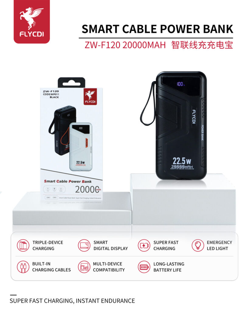 FLYCDI Smart Power Bank 10000mAh – ZW-F110 (22.5W, LED Display, Built-in Cables)