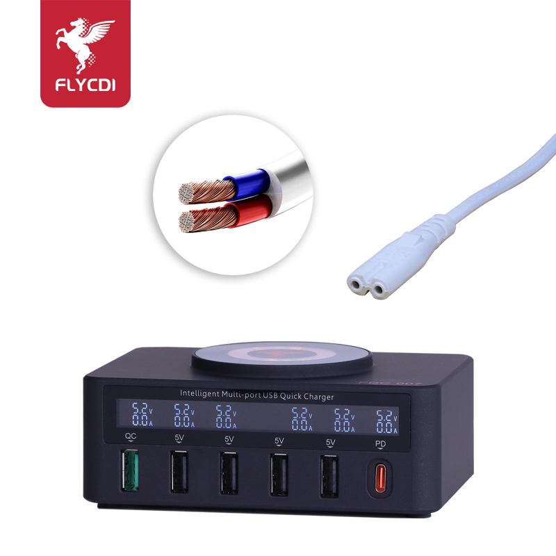 FLYCDI FDC-007 65W 6-Port USB Charger with Wireless Charging & Display