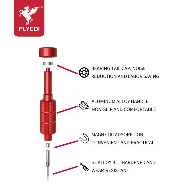 Achieve flawless repairs on smartphones, electronics, and delicate devices with the FLYCDI Steeleequus Series 6-Piece Precision Screwdriver Set. Featuring dual-bearing handles and magnetic tips, these tools provide unparalleled precision and comfort.